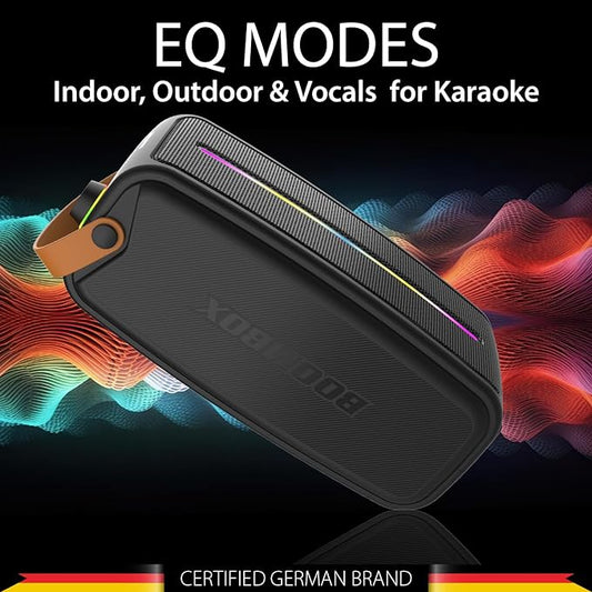 Blaupunkt Atomik PS30 Pro Wireless Bluetooth 30W Outdoor Party Speaker I Dual Passive RadiatorI 3000mAh Battery I Dynamic RGB Lights I Karaoke with Wired Mic I EQ Button I Flexible Carrying Strap