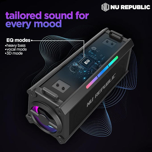 NU Republic Sonicpop 1200 with 60W Stereo Party Speaker with Vibrant LEDs, Multi Equaliser Modes, Multi Compatibility Modes, 18 Hrs Playtime, Bluetooth TWS Feature, Powerful 3x Dynamic Drivers (Black)