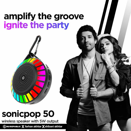 Nu Republic 5W Bluetooth Speaker BT V5.3 Sonicpop 50-14 Hrs Playtime & RGB LED Light, Portable Wireless Stereo Pairing Speaker for Home, Travel with Loud Sound, Rich Bass & 50mm Dual Dynamic Driver