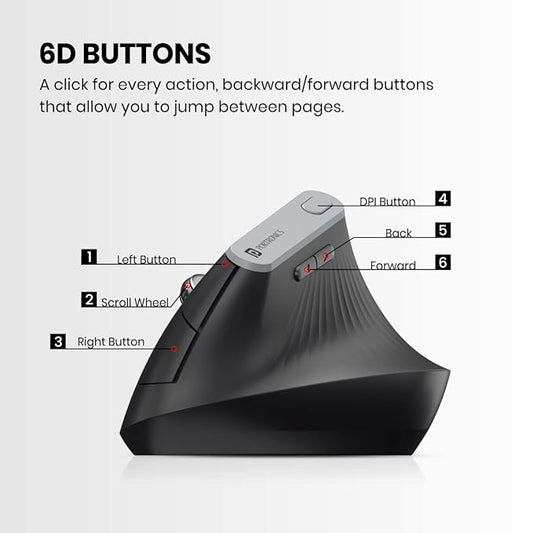 Portronics Toad Ergo Vertical Advanced Wireless Ergonomic Mouse 2.4Ghz, 6D Button, Wrist Support, Adjustable DPI Upto 1200, Supports Hand Posture(Black)