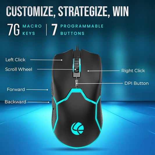 LAPCARE Champ VOYAGER 7200 DPI Optical Sensor Gaming Mouse with Dazzling RGB Light | Marco 7G Keys | 5m Clicks | ABS Material | Rubber Oil + Laser Carving (LGM 201)