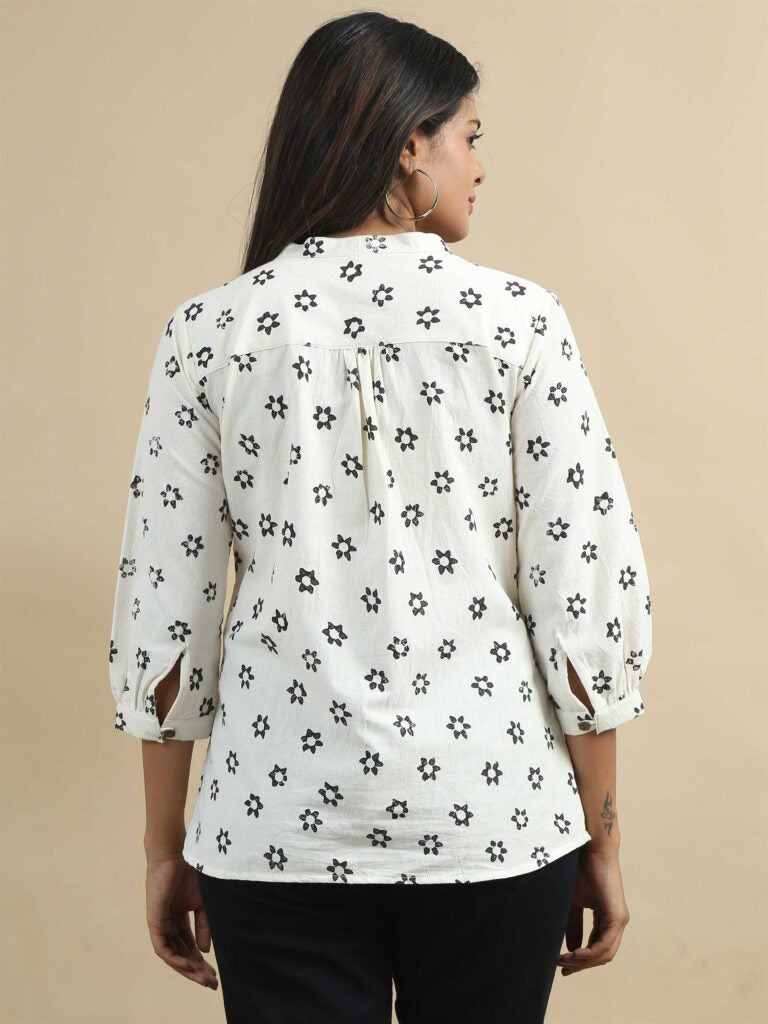 Three-quarter puff-cuff sleeves with coconut shell buttons