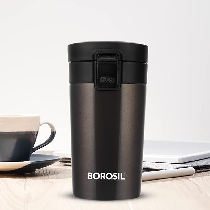 Borosil Coffeemate Insulated Mug, Vacuum Insulated Travel Coffee Mug with Lid, 8 Hours Hot and 14 Hours Cold, 300 ml, Mocha, Stainless Steel