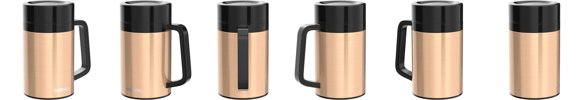 COPPER COATED DOUBLE-WALL VACUUM INSULATION - The double wall vacuum insulation of the mug maintains the temperature of inside contents for hours and prevents condensation from forming on the bottles exterior.
