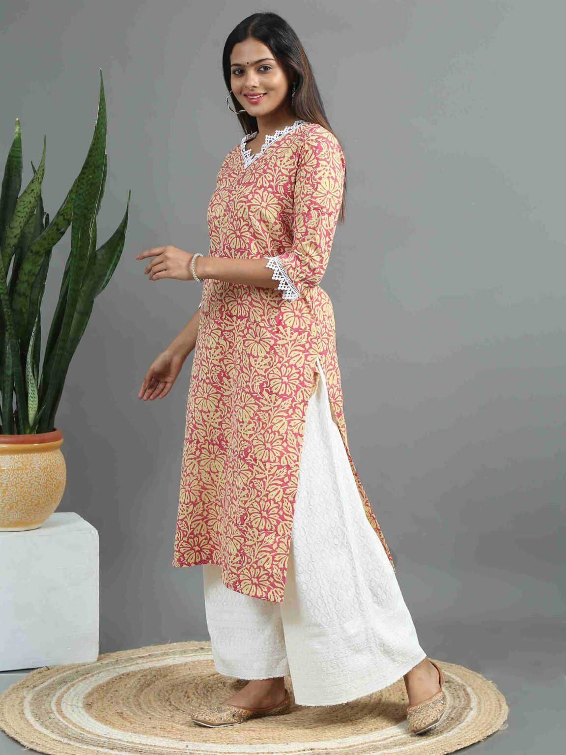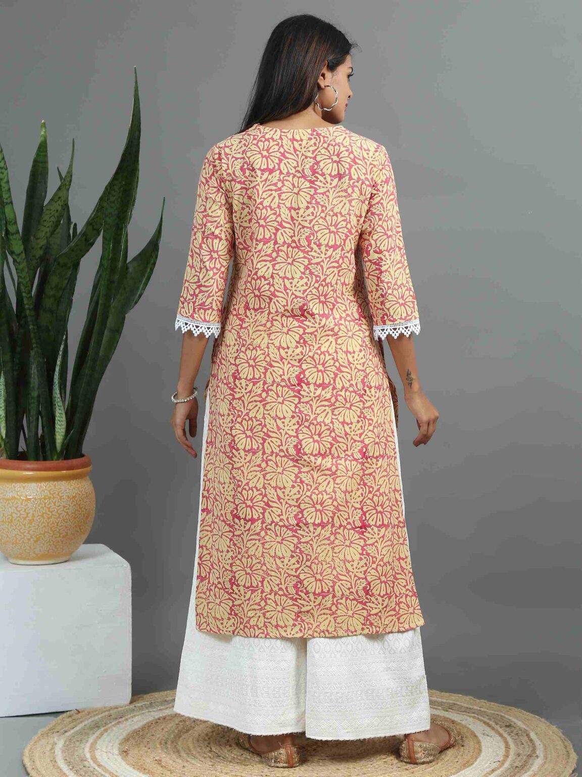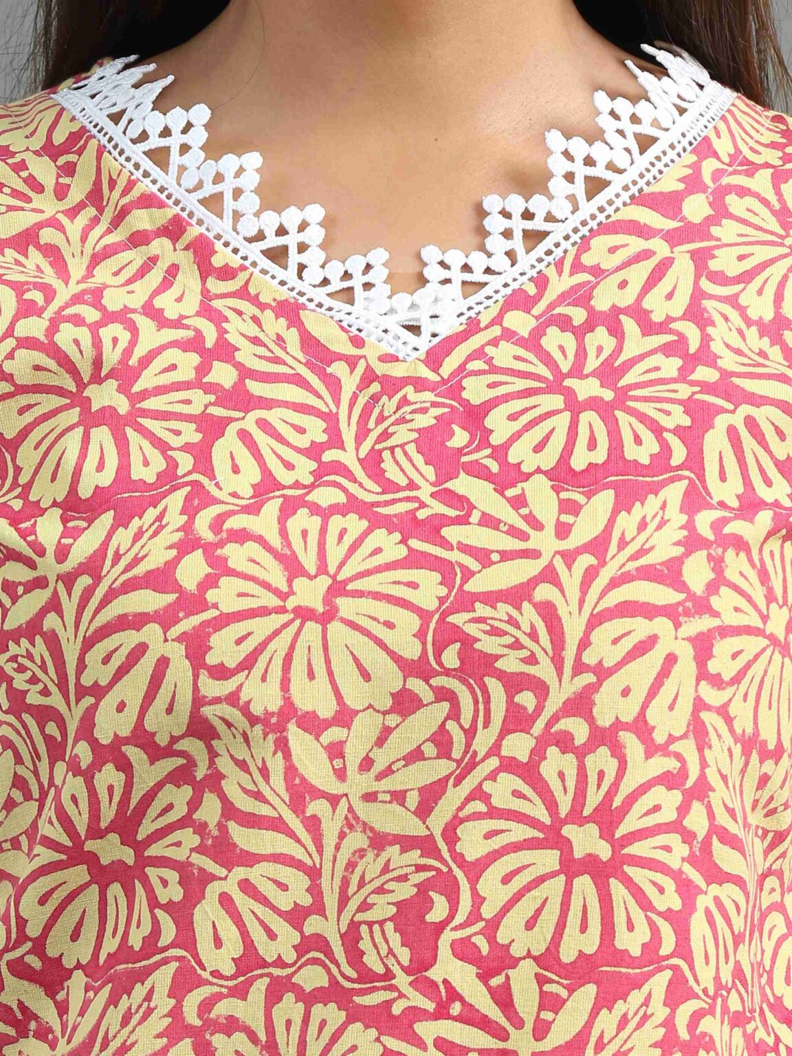 Floral Printed Kurta Yellow and Magenta Floral Printed Kurta