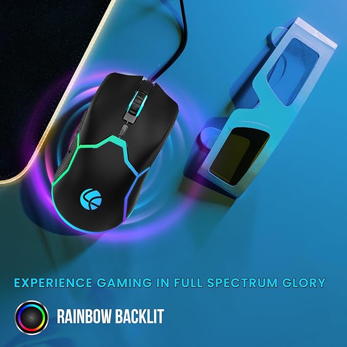 • Rainbow Light: The mouse features rainbow lighting, which adds an aesthetic element to the gaming setup. Rainbow lighting typically involves a cycle of colors.