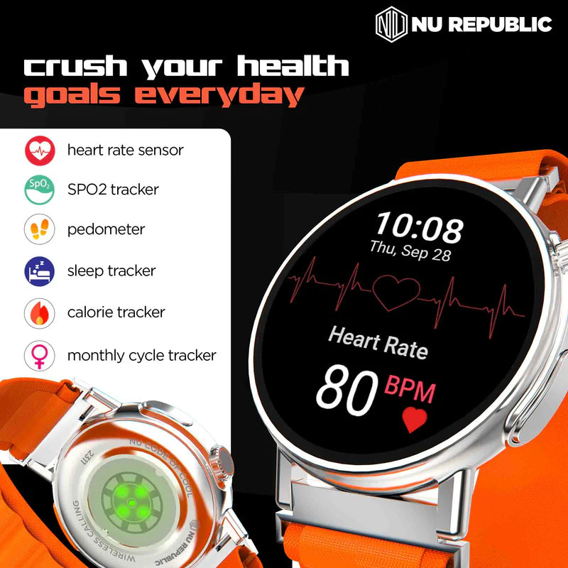 Nu Repiblic Creed Max 1.43" HD IPS Display | BT Calling & Music | IP67 Water Resistant | Rotating Crown | Up to 20 days Standby Time | Multi Sports Modes