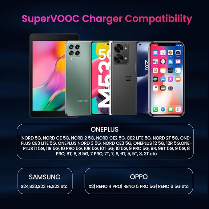 • Wide Compatibility : This power brick supports super-fast charging for many mobile phones. 65W Warp charge for 10 Pro/10R/9 Pro/9/8T/Nord 2T/9R/9RT, 30W warp charge for Nord N20/N10/Nord/8 Pro/8/7T Pro/7T/7 Pro/6T, dash charge for Nord N200/N100/7/6T/6/5T/5/3T/3. Fast charge for pixel/TCL etc.