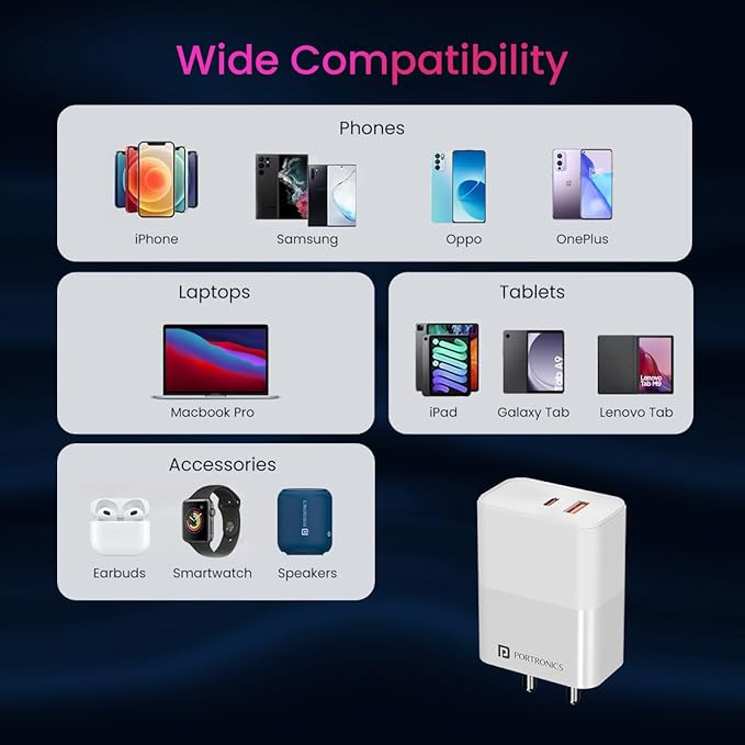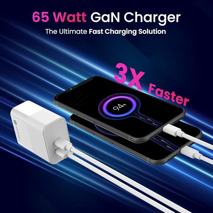 • Innovative GaN Charger: Upgrade your charging game with the Adapto 65 Pro Power Adapter from Portronics. This GaN Charger has fast-charging capabilities and can charge devices up to three times faster than traditional chargers.