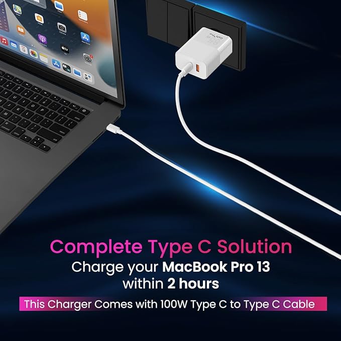 • Fast Charge PD Port: 65W Power Delivery 3.0 (with PPS) is powerful enough to fast charge your MacBook Pro 13 within 2 hours. The charger comes with Type C Cable for ultimate convenience.