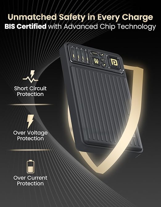 - BIS Certified: BIS certified with advanced chip protection layers, this durable power bank ensures your devices are safeguarded against short circuits, over-temperature, and over-voltage issues.