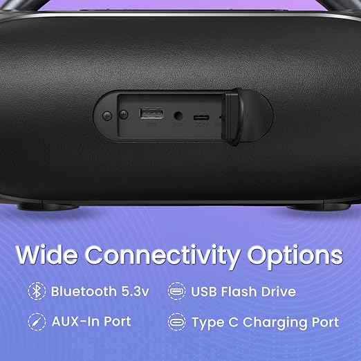 EFFORTLESS PAIRING: Connect your devices to the speaker via a wide range of options for uninterrupted, HQ sound. The speaker has Bluetooth 5.3v, an AUX-In Slot, & a USB Flash Drive to give you a versatile and enjoyable listening experience.