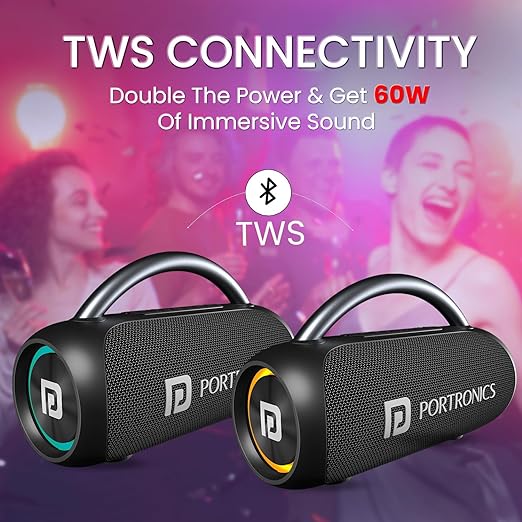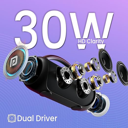 Portronics Radiant 30W Wireless Bluetooth Portable Speaker With In-Built Mic,6 Hours Playtime,HD Clarity Sound,Dual Driver,RGB LEDs,TWS Connectivity,BT5.3v,USB Drive,Aux in,Type C Fast Charging(Black)
