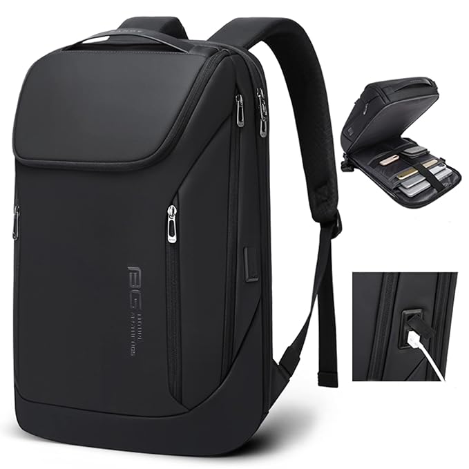 The BANGE business smart backpack can hole 15.6 inch laptop backpack,90°opening pocket for your laptop easily extract and is strong, all-purpose backpack with enough capacity for business, overnight or weekend trip, it will hold your personal items all. It's built with long-lasting, ultra durable water resistant oxford, your belongings will be protected from the elements. The full zip opening allows for easy packing with loads of capacity. Constructed with durable and water-resistant fabric padding. Center zip fully opens for ease of packing multiple compartments .Multiple external straps handle for easy handling.added shoulder straps provide comfort while carrying.Multiple zippered quick access stash pockets.Elastic side pocket perfect for water bottle storage.