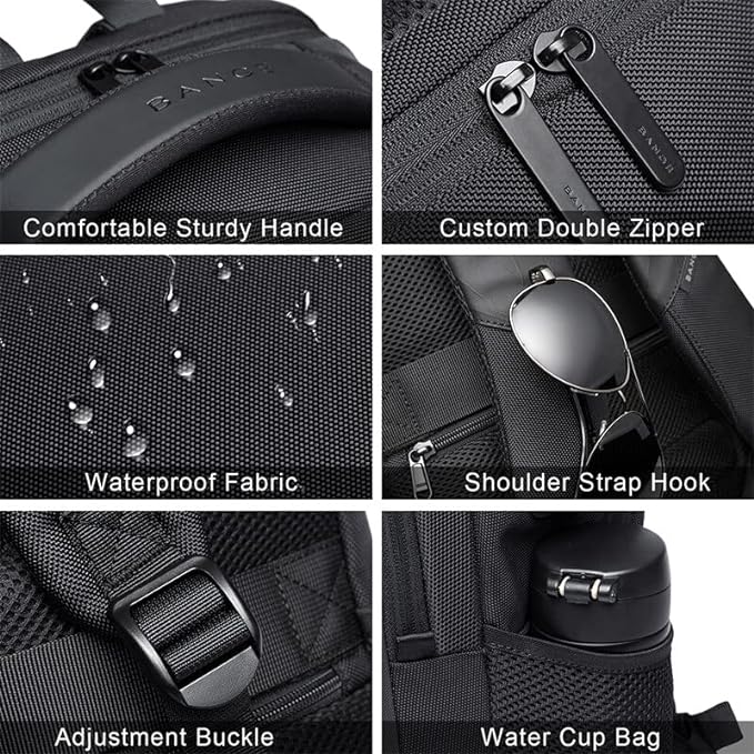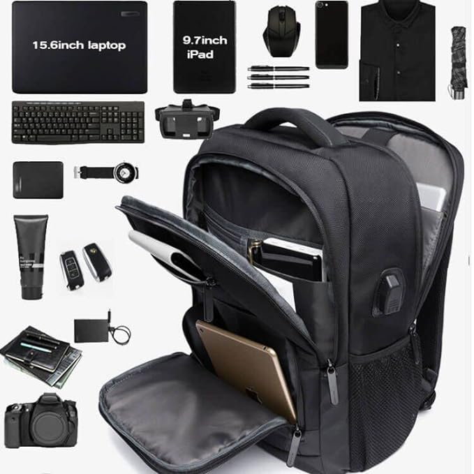 LARGE CAPACITY : Comes with 2 compartments with one separate cushioned laptop sleeve to hold 15. 6 inch Laptop. Additional front zipper pockets with an organiser to store magazine, pens, key,music, cosmetic, pen, charger, powerbank, cable etc. Side pockets for water bottles,umbrella. Back hidden anti theft pocket can hold your wallet,phone,etc