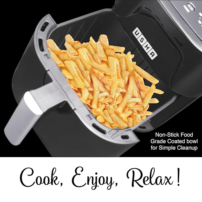Usha iChef Air Fryer 4.5L, Analog, 10 in 1 Functions: Air frying, Baking, Roasting, Grilling, Thawing, Slow cooking, Barbeque, Braising, Toasting and Air drying |Turbo Air Circulation|Oil Free Cooking (Black)